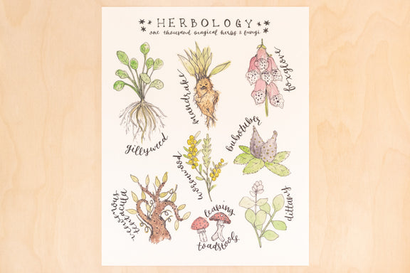 "Herbology: one thousand magical herbs & fungi " 8x10" art print, made for framing.